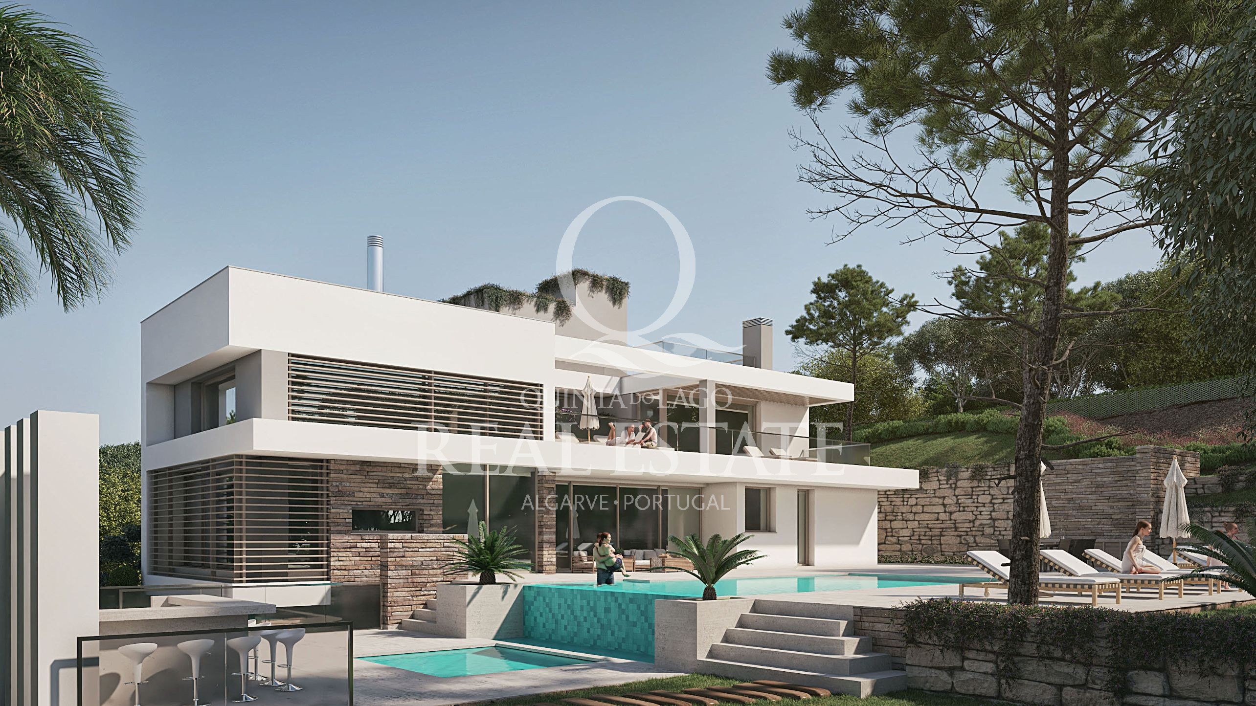 Nestled in one of the most sought-after addresses within the Quinta do Lago resort, this masterpiece of design, which is currently under construction, captivates with its fusion of modern style and timeless elegance. Bold, clean lines will be used to great effect throughout the 732.00 sqm home, offering a fabulous property in a central location. Spacious volumes characterize the villa’s chic interiors, taking in a delightful office area, cloakroom, modern kitchen, generous open-plan living room, and a bar area with direct access to the outdoor pool area. On this level, two guest bedrooms can be found, perfect for family and friends. On the upper level are two further bedrooms with private bathrooms, ample walk-in wardrobes, and large terraces.
